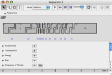 Éditeur de courbes "BPF" (Break Point Functions). Création ou modification de l'évolution de l'amplitude, de la fréquence fondamentale ou de l'amplitude des partiels du son.